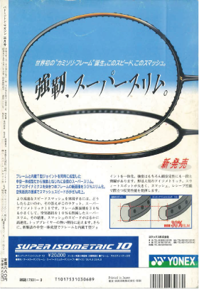 プレースタイルはパワー重視の時代に。ヨネックスではいち早くラケットのパワー化を図りました。そこで誕生したのがフレームトップにカーボンの2.5倍の比重を持つソリッドチタンを複合した「パワーアーマーシステム」。さらに独自の断面形状を採用。カーボンなのに金属のような打感のパワーラケットとして人気を博しました。