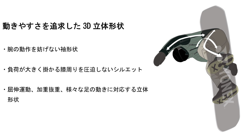 スノーボードにおいては、冨田せな選手、戸塚優斗選手、平野流佳選手など、世界的な活躍する選手を用具、ウェアの面でサポートしております。ウェアに関しては各選手から「着こまなくても暖かいので、かさばらず動きやすい。生地につっぱりを感じず、ストレスなく技が出せる」と高評価をいただいております。