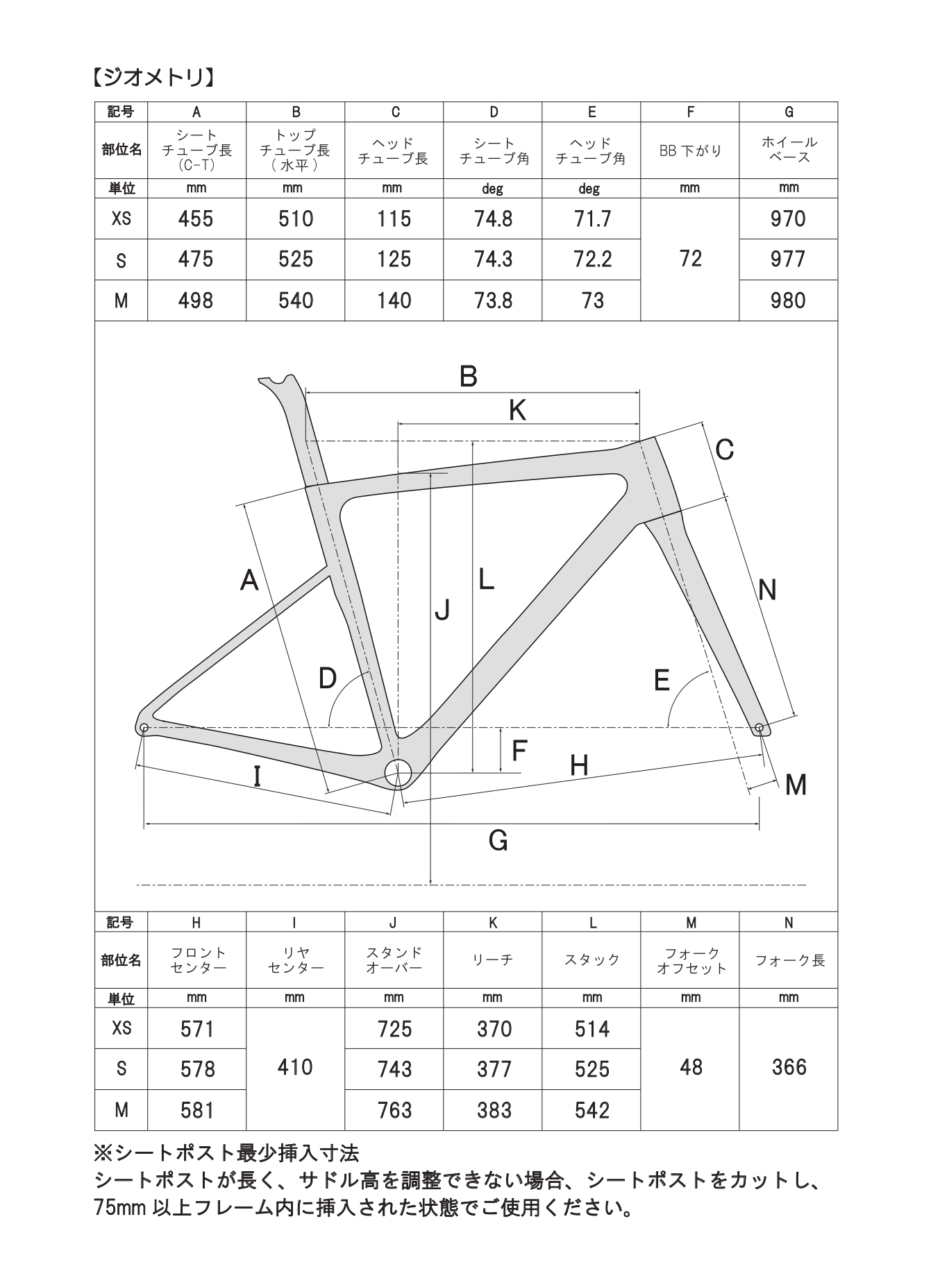 - TRACE 専用シートポスト XS:長さ250mm/セットバック15mm S・M:長さ290mm/セットバック15mm