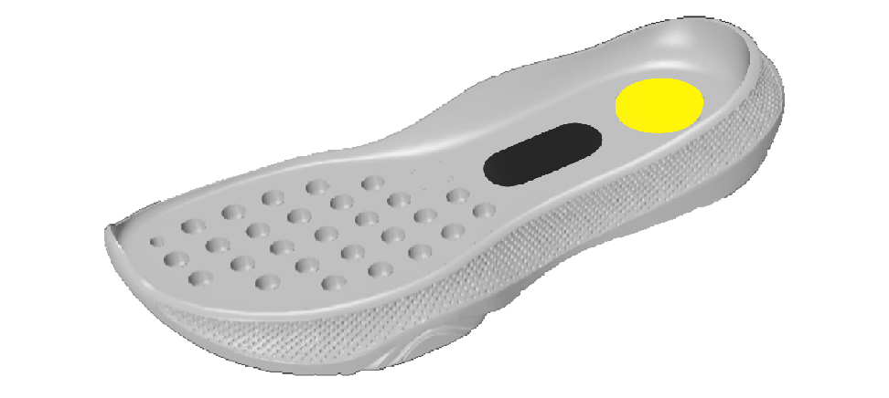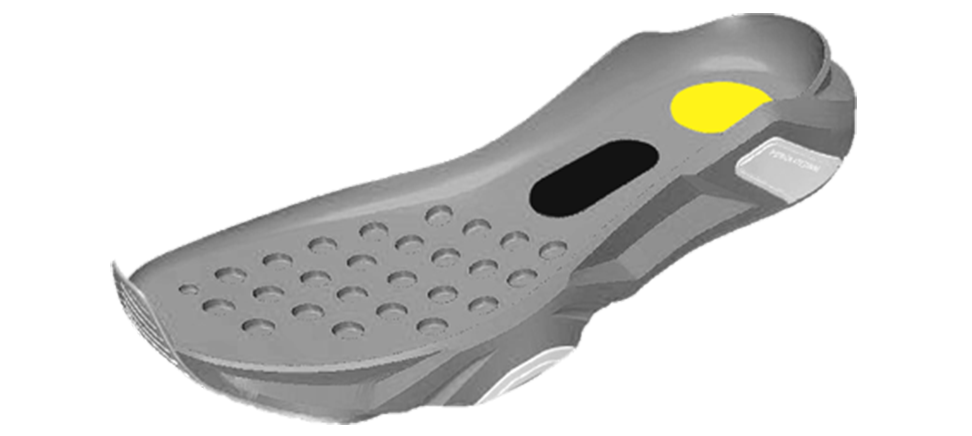 「ポジションガイドポッド」搭載拇指球の直下に配置した凸形状の「ポジションガイドポッド」により、つま先で接地する足裏感覚を養います。日頃からつま先接地の感覚を身に着けることでトレーニング時の姿勢を改善し、正しいフットワークによりプレー時に最大パワーを発揮できるようになります。