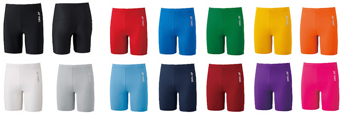 「JUNIORハーフスパッツ」左上からブラック、ブラック(背面)、レッド、ブルー、グリーン、イエロー、オレンジ