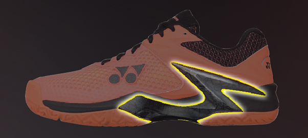 かかと部の丸みを大きくし、コートとの接地面を拡大。スムーズな着地が可能。